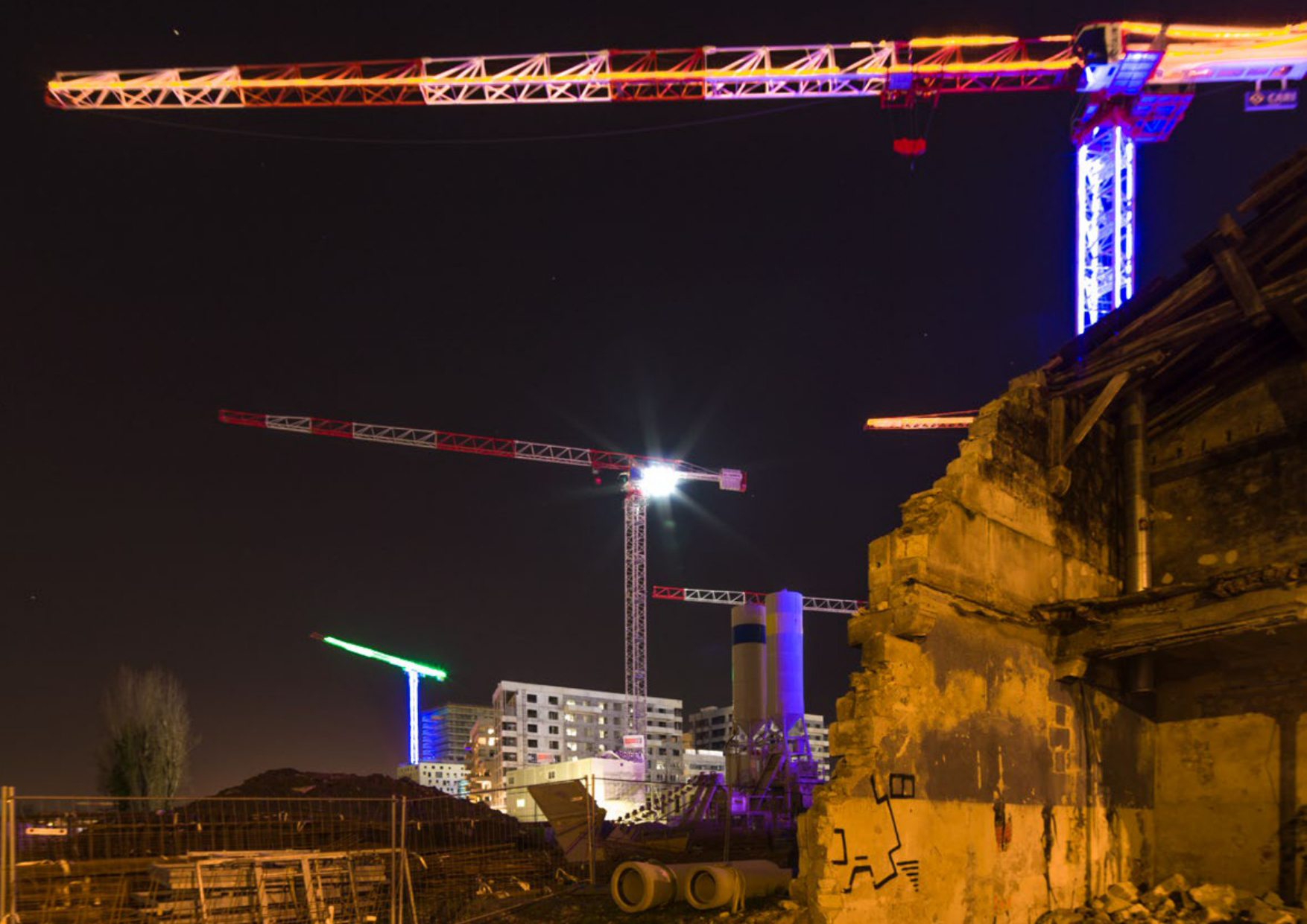 Covering more than 730 hectares straddling the municipalities of Bordeaux, Bègles and Floirac, the BordeauxEuratlantique project is one of the largest development projects currently underway in France. In 2019, the public development agency (EPA) overseeing the transformation invited me to take a look at this vast area, observe the changes taking place and document them. Alone or accompanied by local residents, I spent these last years exploring the area to assess the extent of the transformation. These almost dreamlike images bear witness to an identity in the making, amid cranes, large construction sites, housing estates and abandoned buildings.